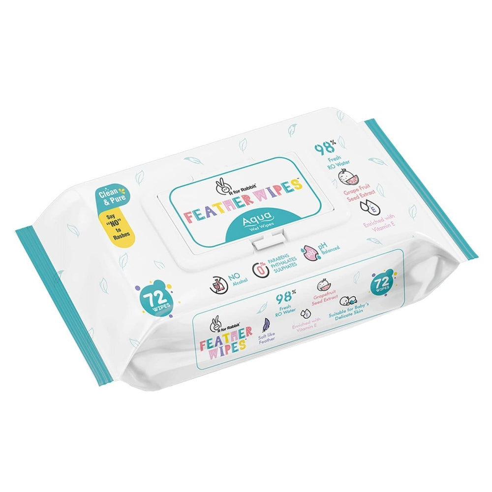 - Safety 1st: R for Rabbit Feather Aqua Wipes are made with 98% Fresh RO Water. These are clean & pure and feel as soft as feathers preventing any rashes.