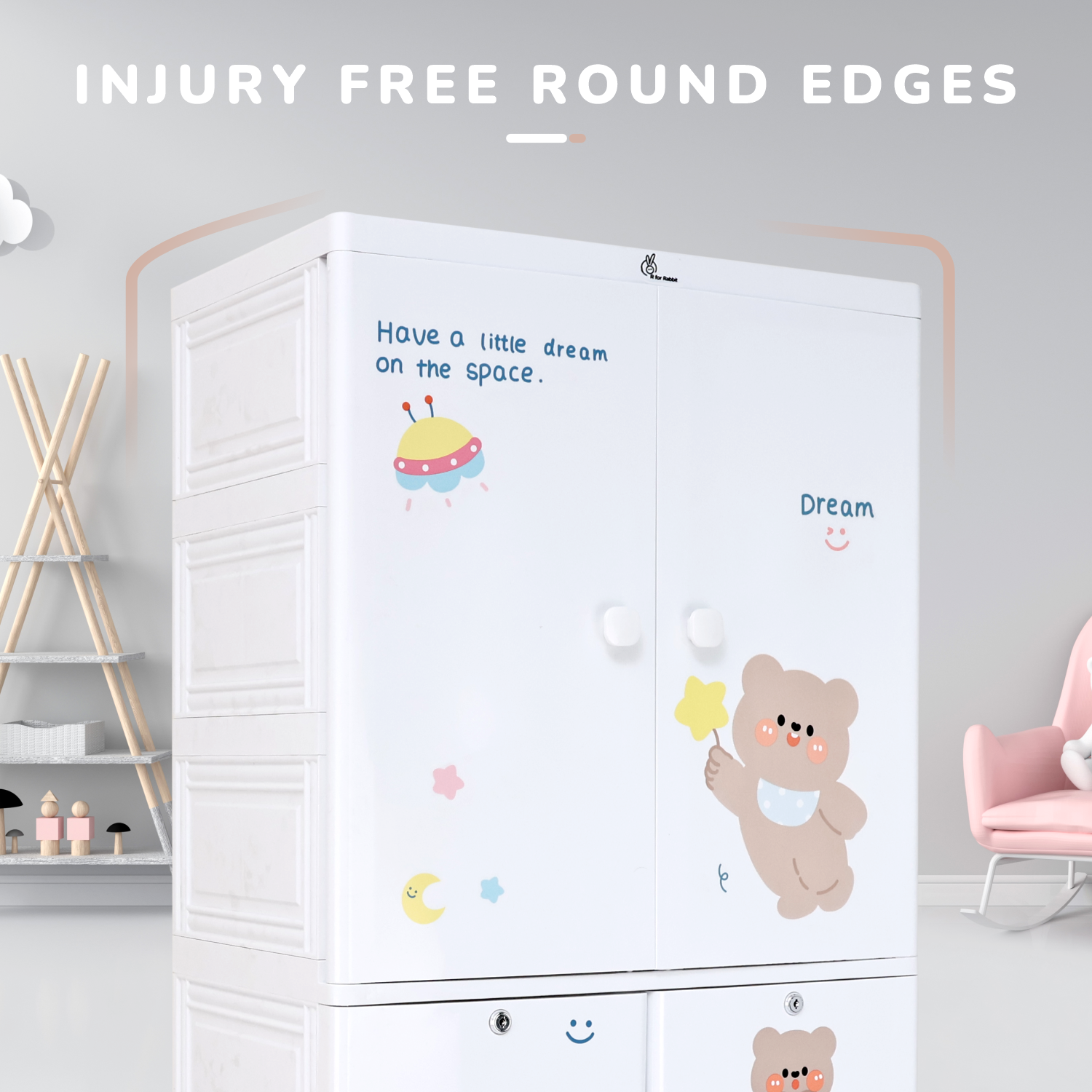 Safety First: R for Rabbit’s Kiddo Korner Stellar is made from PP material, which is non-toxic, baby-friendly, durable, lightweight, moisture-resistant, and easy to clean.