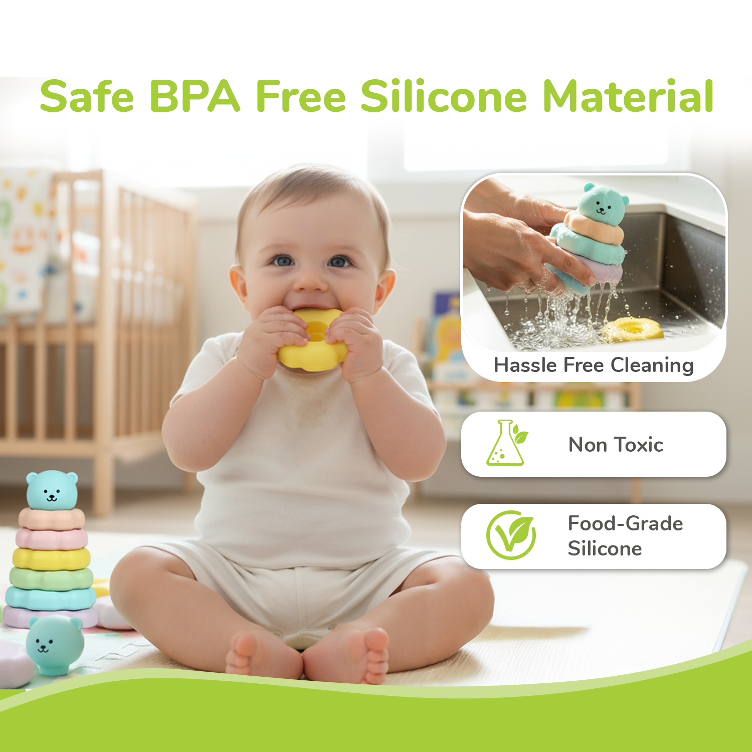Easy Maintenance: R for Rabbit’s Orapple Teddy stacker is designed with a smooth, easy-to-clean surface that could be wiped down in seconds. This contributes to a healthier play habit and fewer germs, promoting a hygienic play environment.