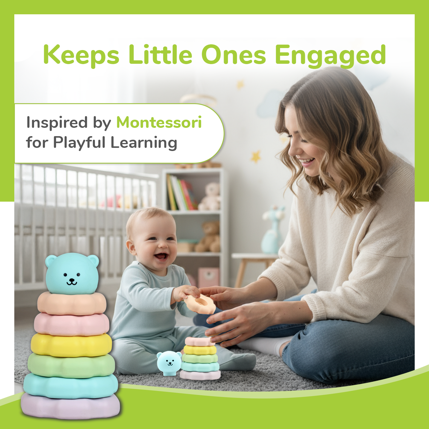 Montessori Inspired: Rooted in these principles, it encourages self-directed, hands-on play, fostering independent learning, concentration, and problem-solving skills in children. This toy introduces core values like stacking, sorting, and exploring, giving children the freedom to learn at their own pace.