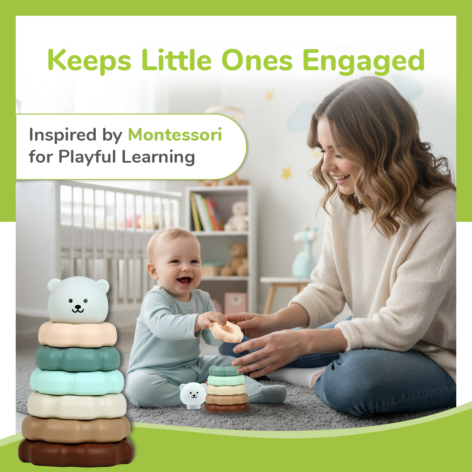 Montessori Inspired: Rooted in these principles, it encourages self-directed, hands-on play, fostering independent learning, concentration, and problem-solving skills in children. This toy introduces core values like stacking, sorting, and exploring, giving children the freedom to learn at their own pace.