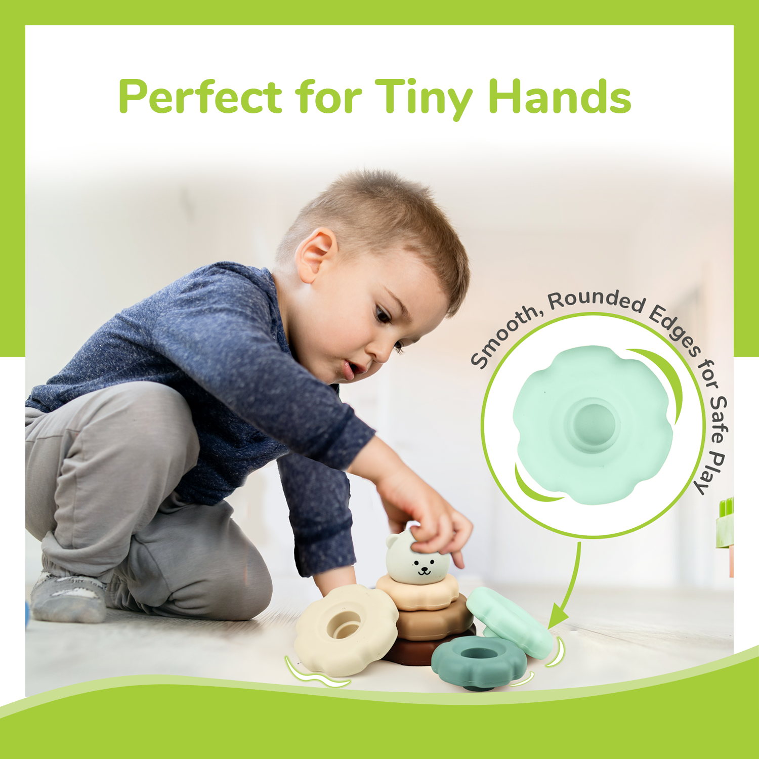 Smooth Rounded Edges: R for Rabbit’s Orapple Teddy Stacker features gentle curves with no sharp edges, making it easy for toddlers to grasp, hold, and explore. This ergonomic design helps in reducing their frustration, promotes confidence, and supports their early grip development, essential for writing and self-care in the future.