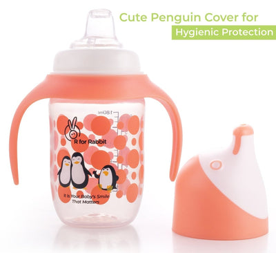 Is it the time for your cute munchkin to sip on? R For Rabbit brings to you Penguin Spout Cup Made with Food Grade Poly Propylene Material to make the sipping time easier. Penguin Spout Cup is made of BPA Free and Phthalate Free Poly Propylene Material & the soft spout is made of soft silicone material which is absolutely safe for your cute little one. The cute penguin-shaped design makes the bottle more appealing as a toy to kids and makes it more adapted as a playful cute pal by the child. 2 side handles help the child to be independent of parents and enjoy the liquid time on his/her own. The soft silicone spout is flexible so that the child gum’s or cute lips will do not get any harm. The spout cup is designed that it is leak-proof and make the drinking time hassle-free for baby and parent!
