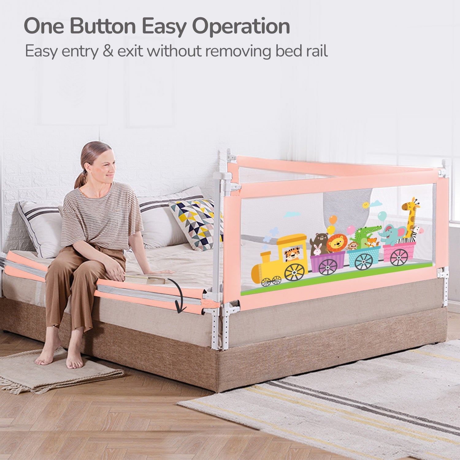 One Button convenience: R for Rabbit’s Safari Bed Rail can be effortlessly raised or lowered even by a single hand, ensuring quick and easy access for parents.