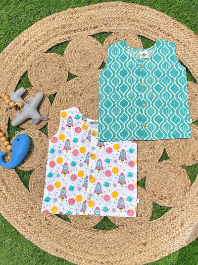 Rust Block & Indigo Printed Cotton Infant Jabla