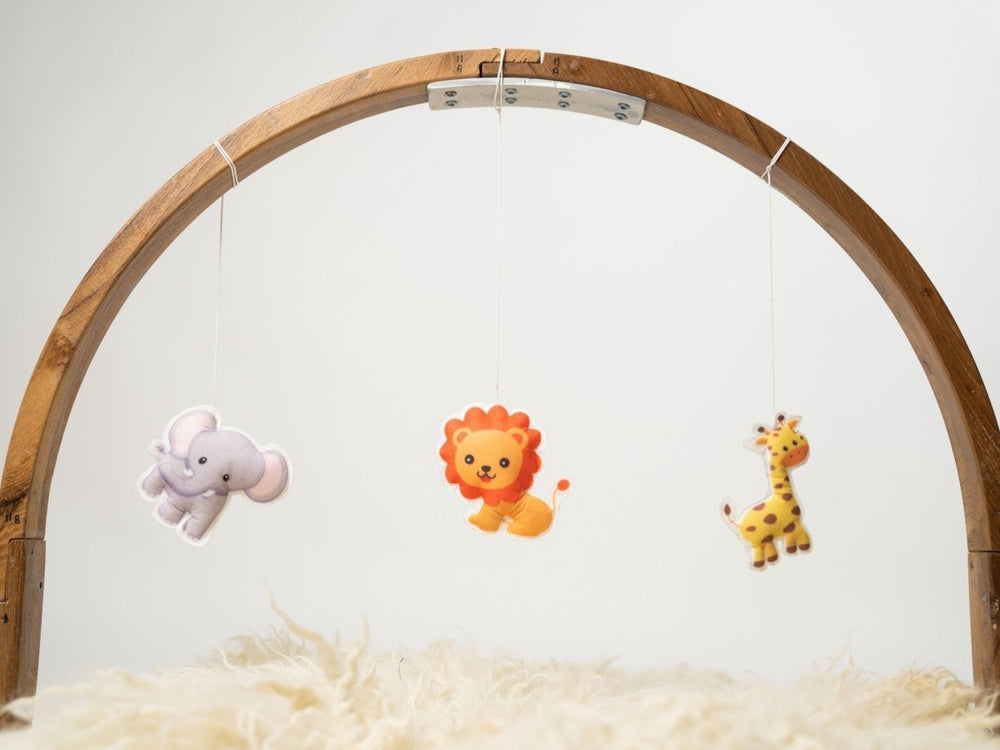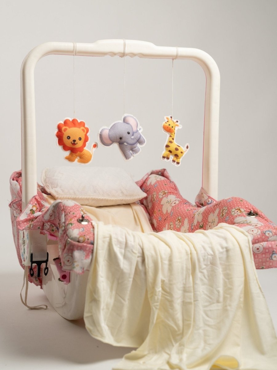 Felt Animal themed hanging toys are a perfect accessory for a stroller or car seat for your baby to play with while you are out and about. This Mobile is ready to hang for your baby’s entertainment on your stroller/pram/bassinet/crib/baby gym. Also serves as a nursery décor or a wall hanging.