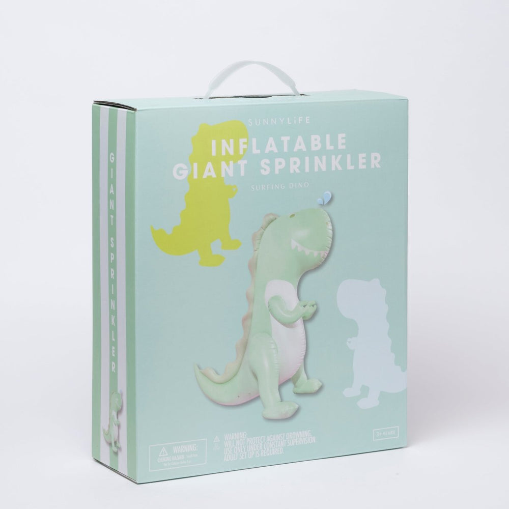Perfect for those summer sizzler days in the backyard or portable parties in the park, our giant inflatable's sprinkler action ensures a mighty squirt for anyone that crosses this dinosaur's path. The kids will be roaring with laughter for hours. Rising 1.6 metres / 5.2 feet tall, it's a towering force to reckon with. Don't be fooled by its friendly grin. It'll get you!
