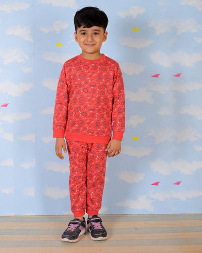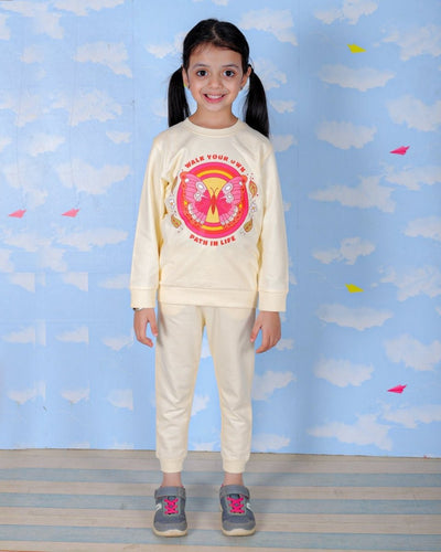 - Girls Glitter Printed Sweatshirt with Jogger Set