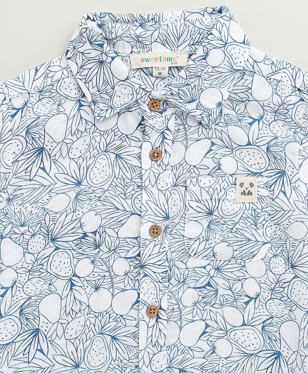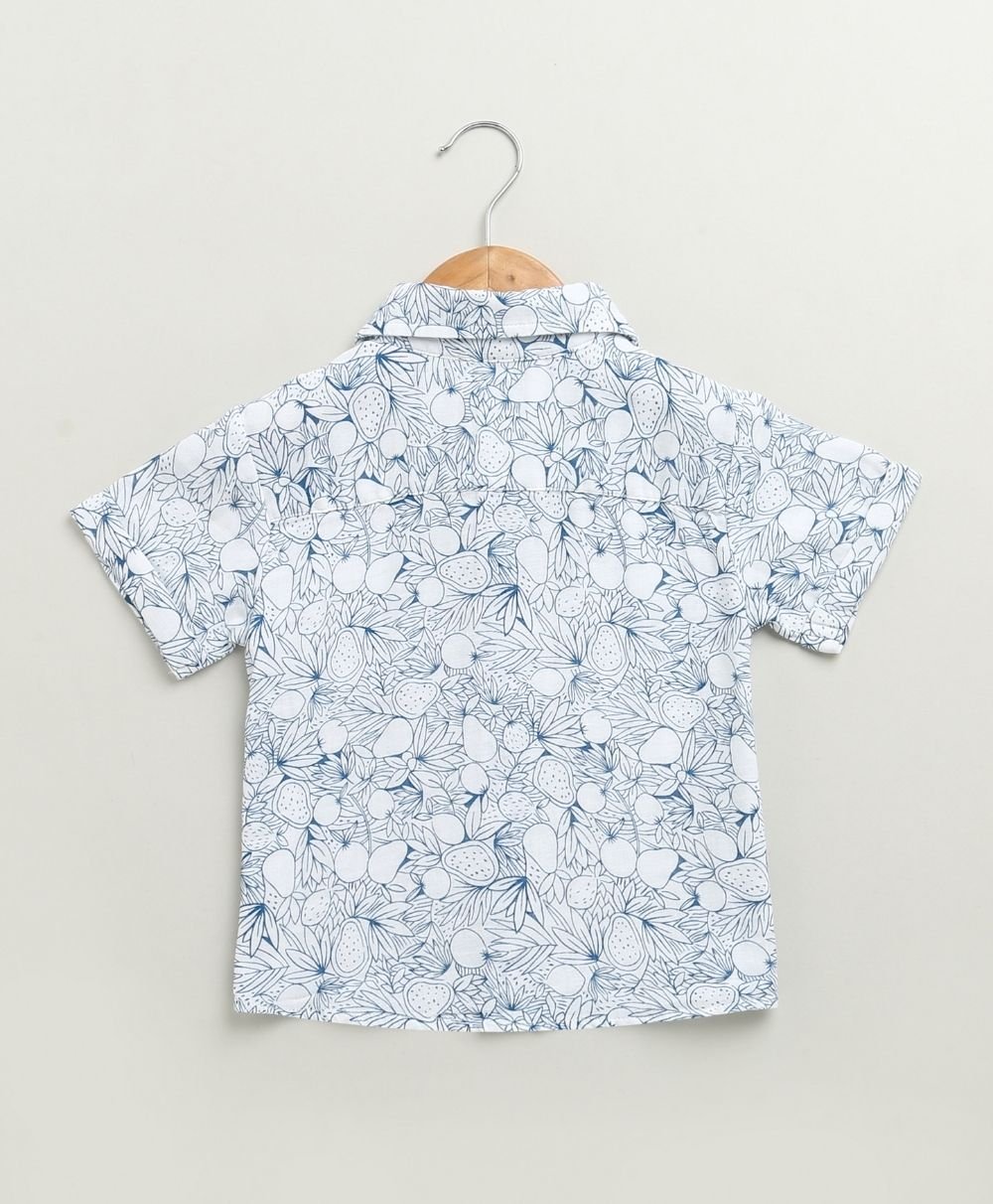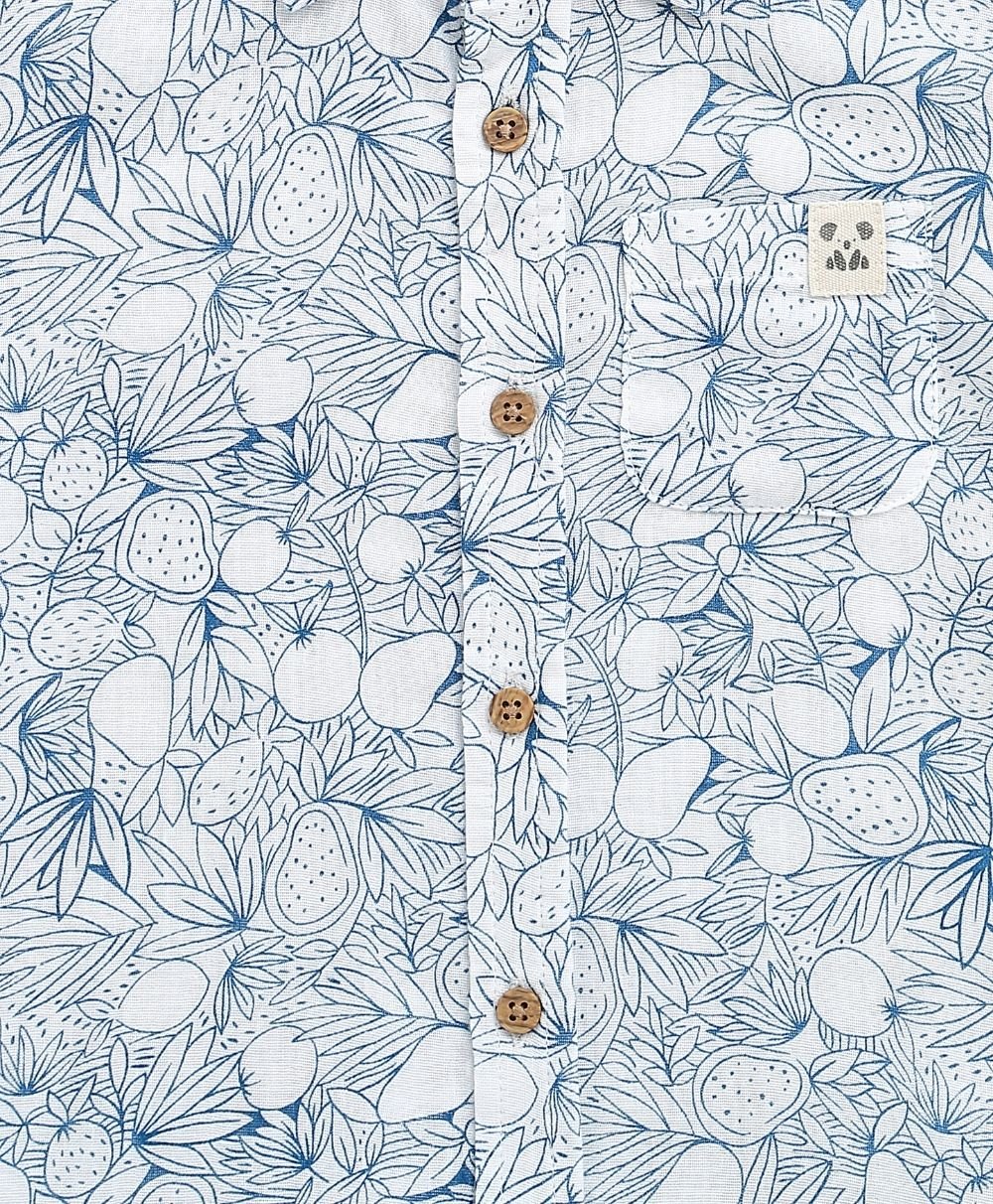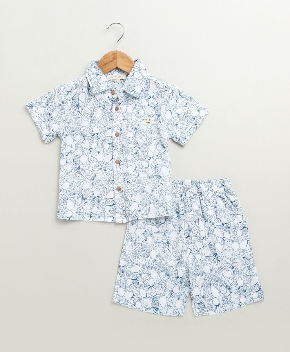 Let your little explorer roam in style with the Blue & White Lemon Print Co-ord Set by Sweetlime By AS. This breezy, two-piece cotton outfit blends comfort with charm. It features an all-over hand-drawn lemon and leaf print in calming shades of blue. The collared shirt and elastic-waist shorts combo is made for warm, playful days. The wooden-style buttons add a rustic touch, while the soft, breathable fabric keeps your child cool and comfy all day long. Perfect for summer picnics, beachside strolls, or just lounging in the backyard jungle!