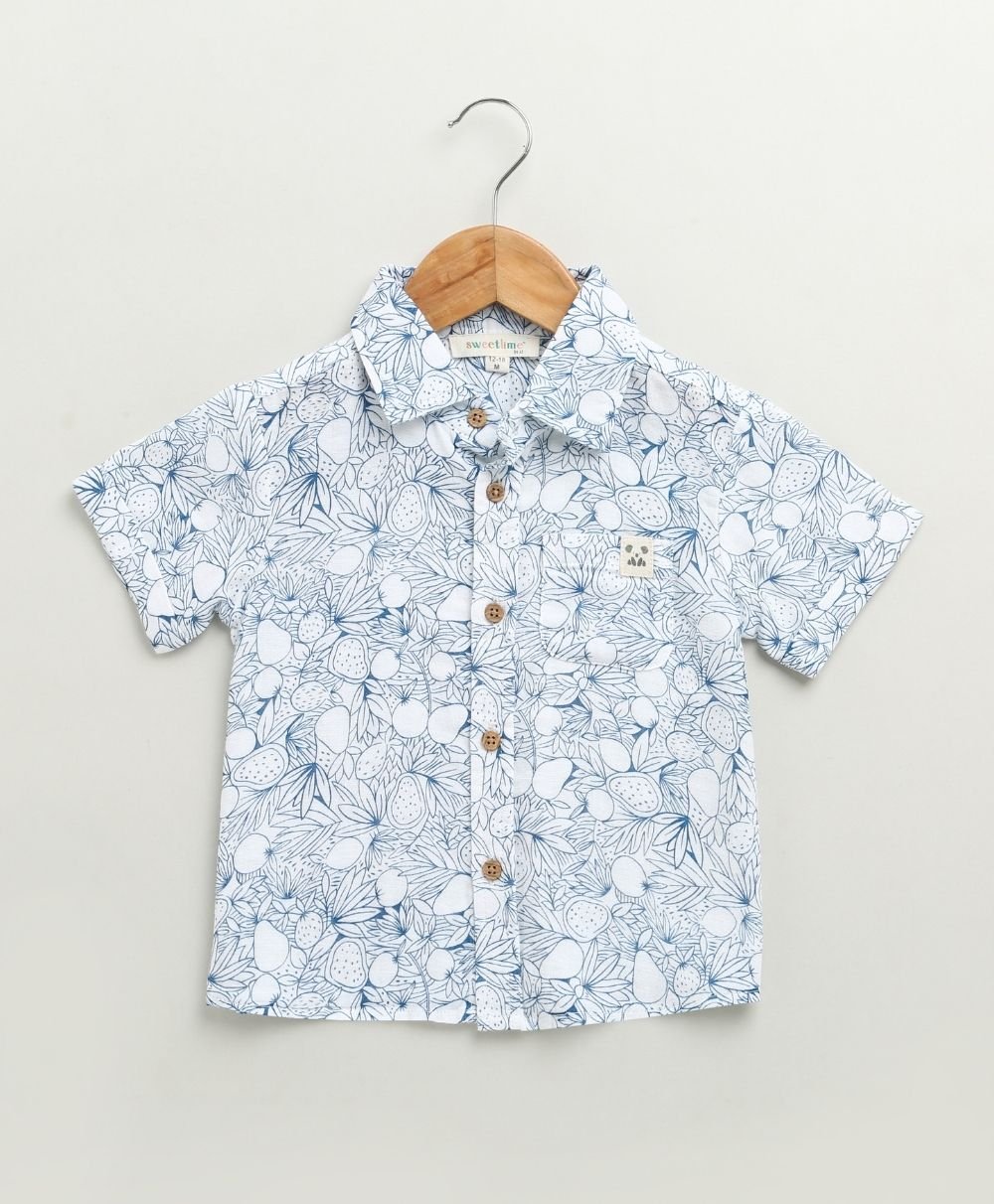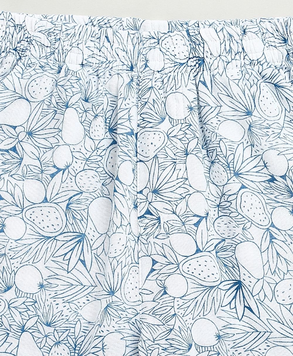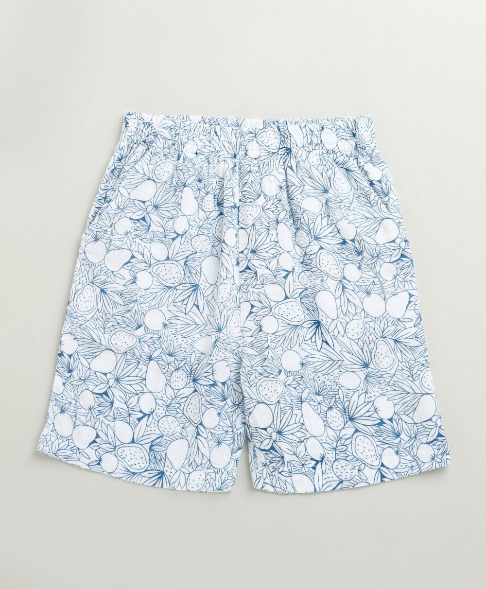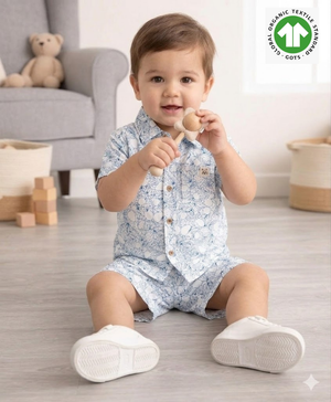 Let your little explorer roam in style with the Blue & White Lemon Print Co-ord Set by Sweetlime By AS. This breezy, two-piece cotton outfit blends comfort with charm. It features an all-over hand-drawn lemon and leaf print in calming shades of blue. The collared shirt and elastic-waist shorts combo is made for warm, playful days. The wooden-style buttons add a rustic touch, while the soft, breathable fabric keeps your child cool and comfy all day long. Perfect for summer picnics, beachside strolls, or just lounging in the backyard jungle!