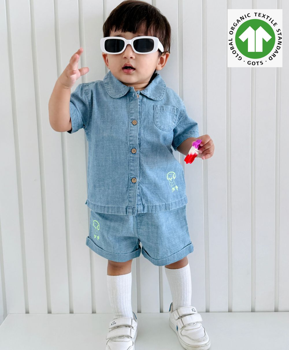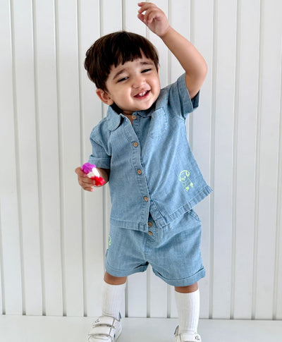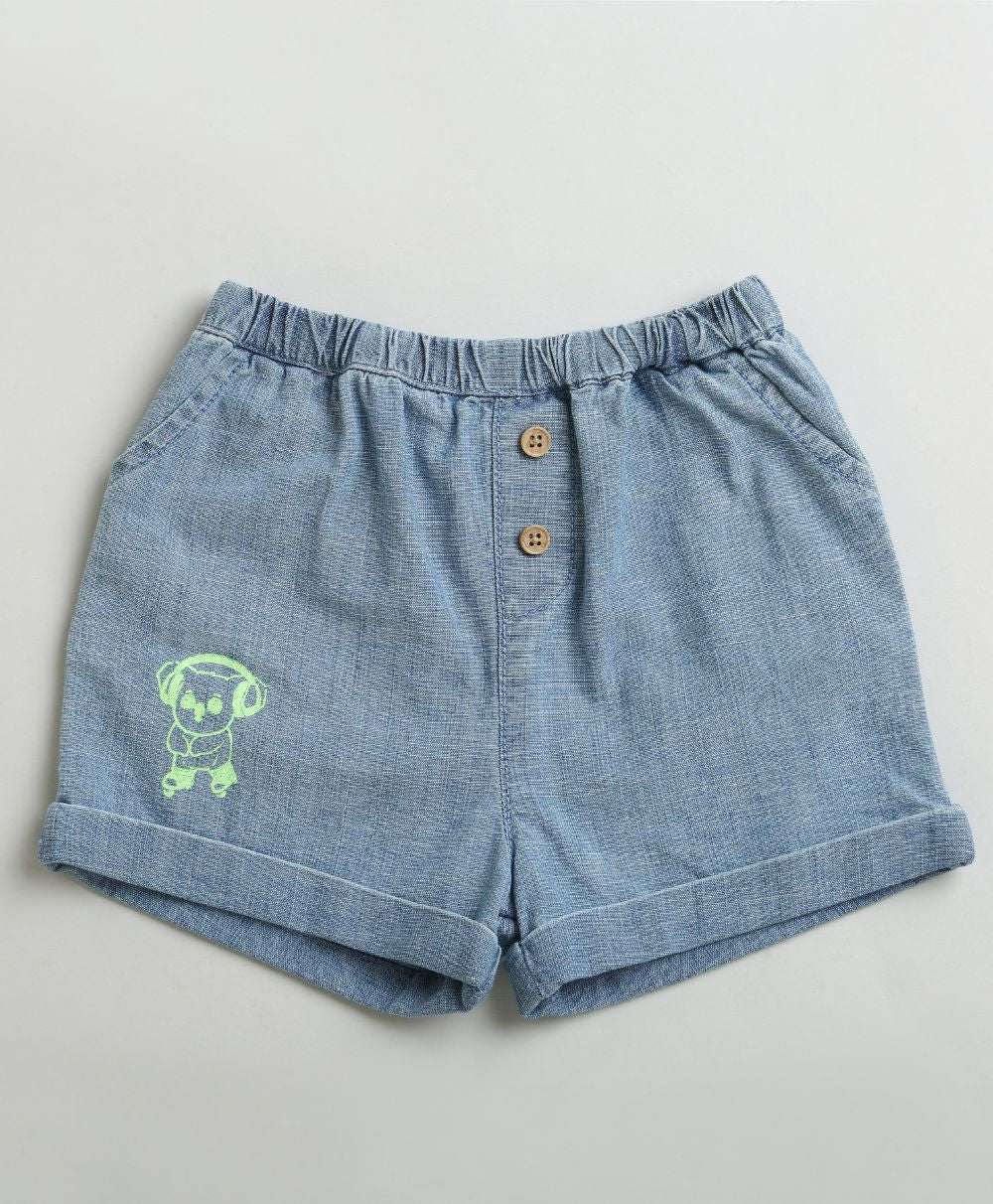 Sweetlime By AS introduces Cotton Denim Shorts for boys with a neon green Koala printed on it. The wooden buttons on the shorts add a touch of classic style while the elastic waistband on the shorts ensures a comfortable fit. The shorts are perfect for everyday wear, playdates or casual outings. The shorts combine comfort and style effortlessly for your little one's wardrobe!