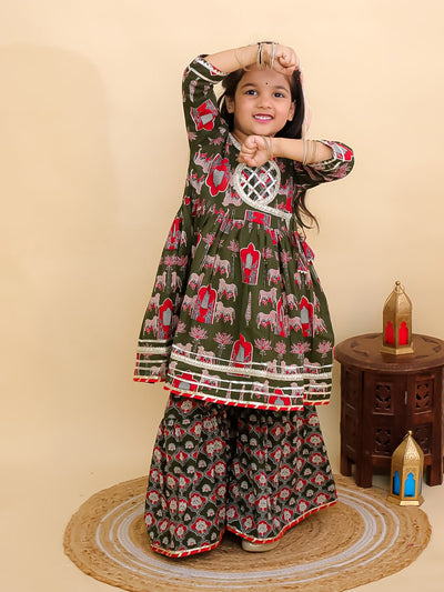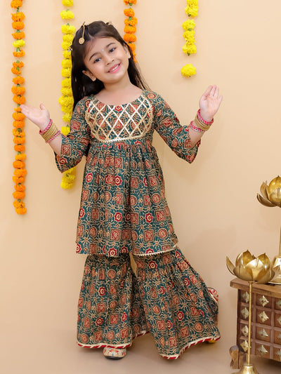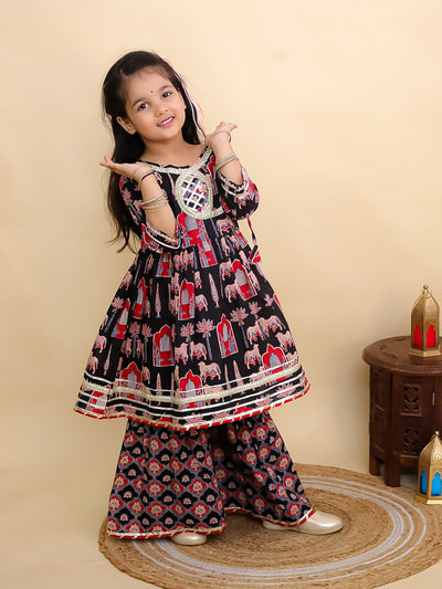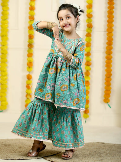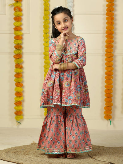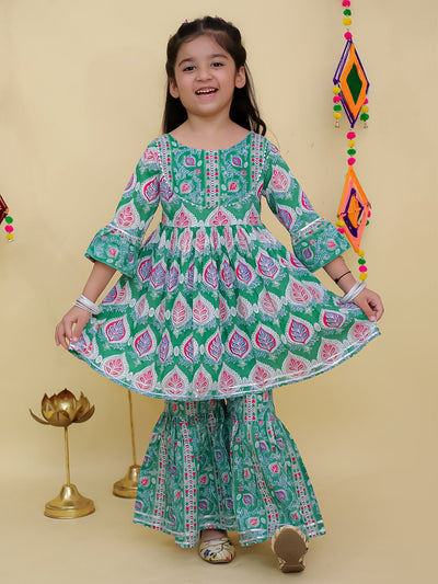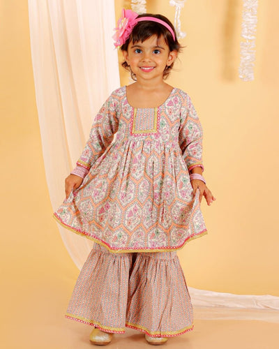 Tarang Floral Print Girls Anarkali Kurta Sharara Set