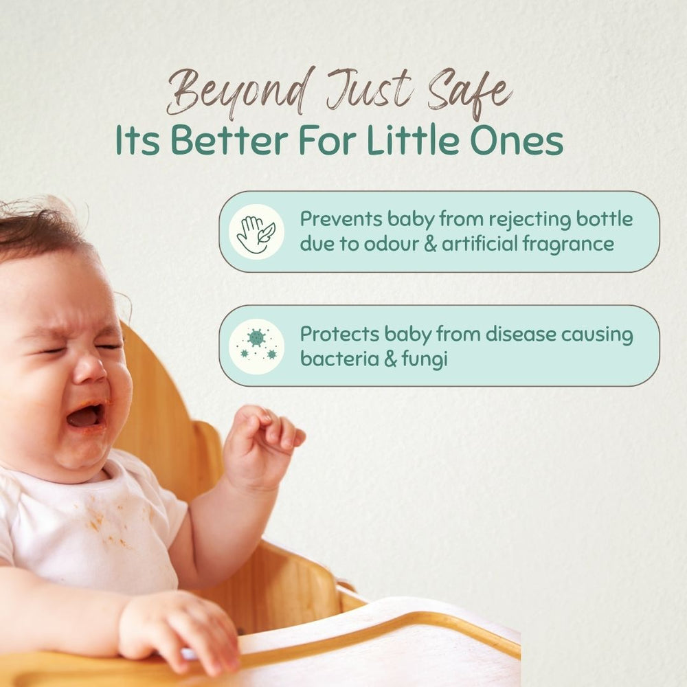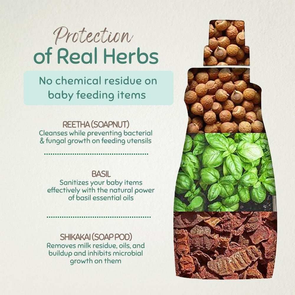 - Soapnut’s and Basil’s inherent antibacterial and antifungal properties safeguard your baby's utensils and toys, reducing the risk of stomach infections.