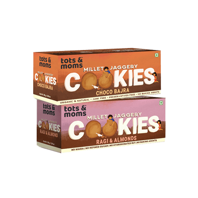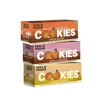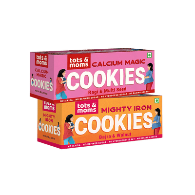 Tots and Moms Calcium Magic, Folic Fiesta and Mighty Iron Cookies, one of the best snacking options for Moms is nutritious blend of various millets, mixed nuts and seeds, jaggery