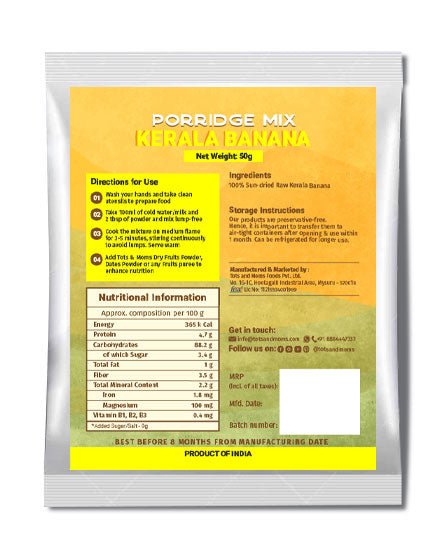 Shelf Life & Storage Instructions: Tots & Moms Products have a shelf life of 8 months. Once opened, store it in an airtight container and consume it within a month. Can be refrigerated for a longer shelf life.