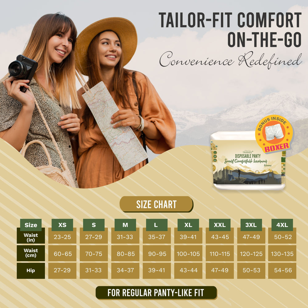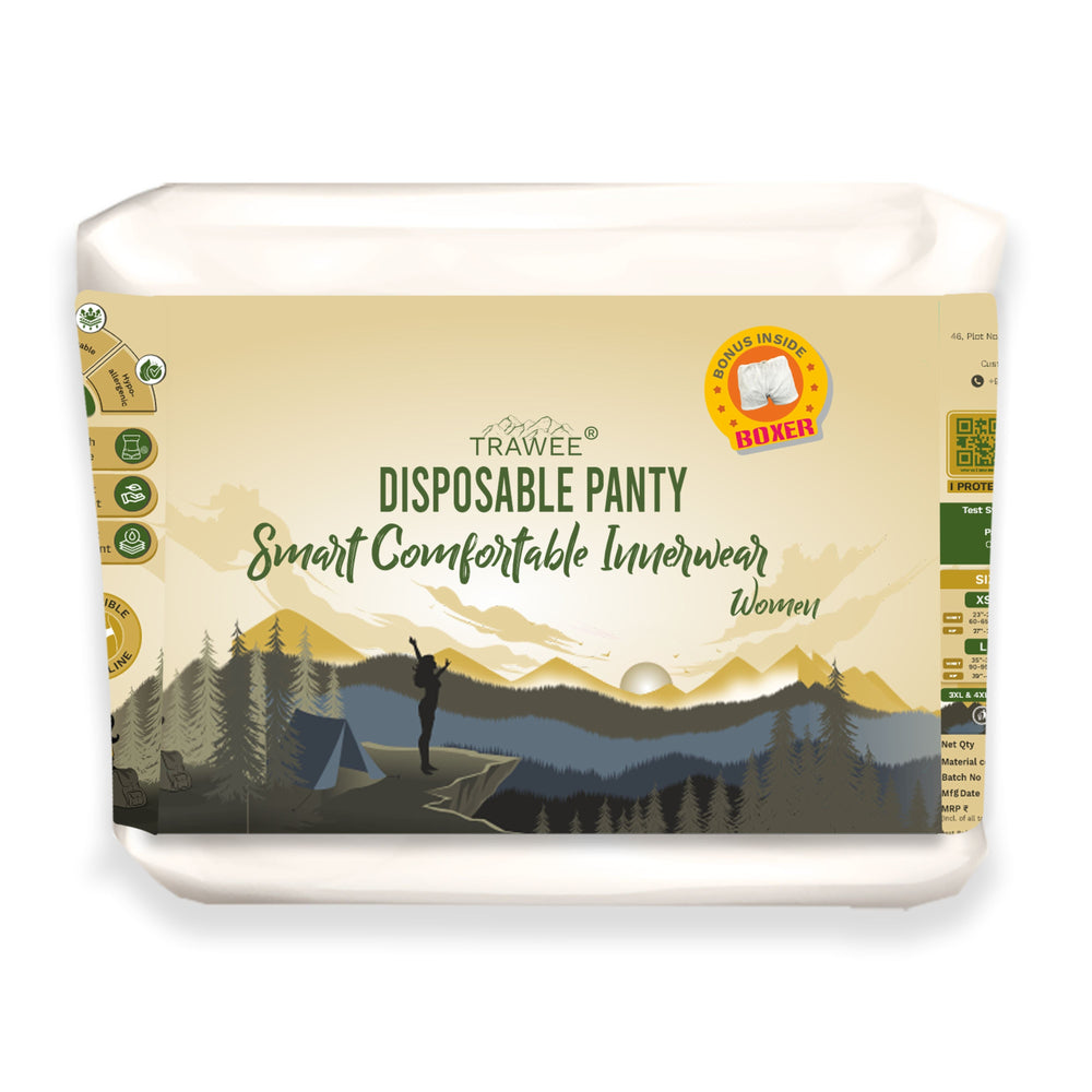 Trawee is specially curated disposable underwear for the ease of travel. Disposable underwear is a solution that provides intimate wellness, hygiene, and protection on the go. Its Anti Fungal and Anti Bacteria properties prevents UTI, rashes and fungal skin infections. Trawee eliminates the washing hassles, packing filthy, used, stained and unhygienic underwear. The breathable factor takes care of the dampness around the groin area, evaporates excess humidity to keep the area clean, dry and hygienic. Unlike other disposable inners available in the market, Trawee provides multiple sizes to accommodate all waists & sizes. Ultra light and can be stored in the travel baggage very easily, it occupies much less space than conventional underwear. First ever disposable boxer. During monsoon or summer season when the humidity or temperature reaches a point where extra care of the health is required. Find your size and make your days and night extra comfy with Trawee.