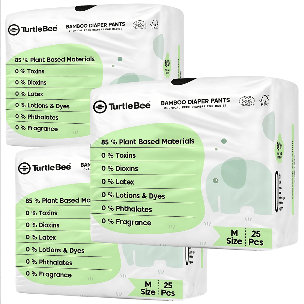 TurtleBee diapers use Chlorine-Free fluff pulp and are free of harmful chemicals or irritants such as latex, alcohol, perfumes, PVC, lotions, TBT or Phthalates. They are made with Bamboo viscose because it is soft, odorless and breathable. TurtleBee diapers are tested and certified by Dermatest®, FSC®, and ECOCERT®.
