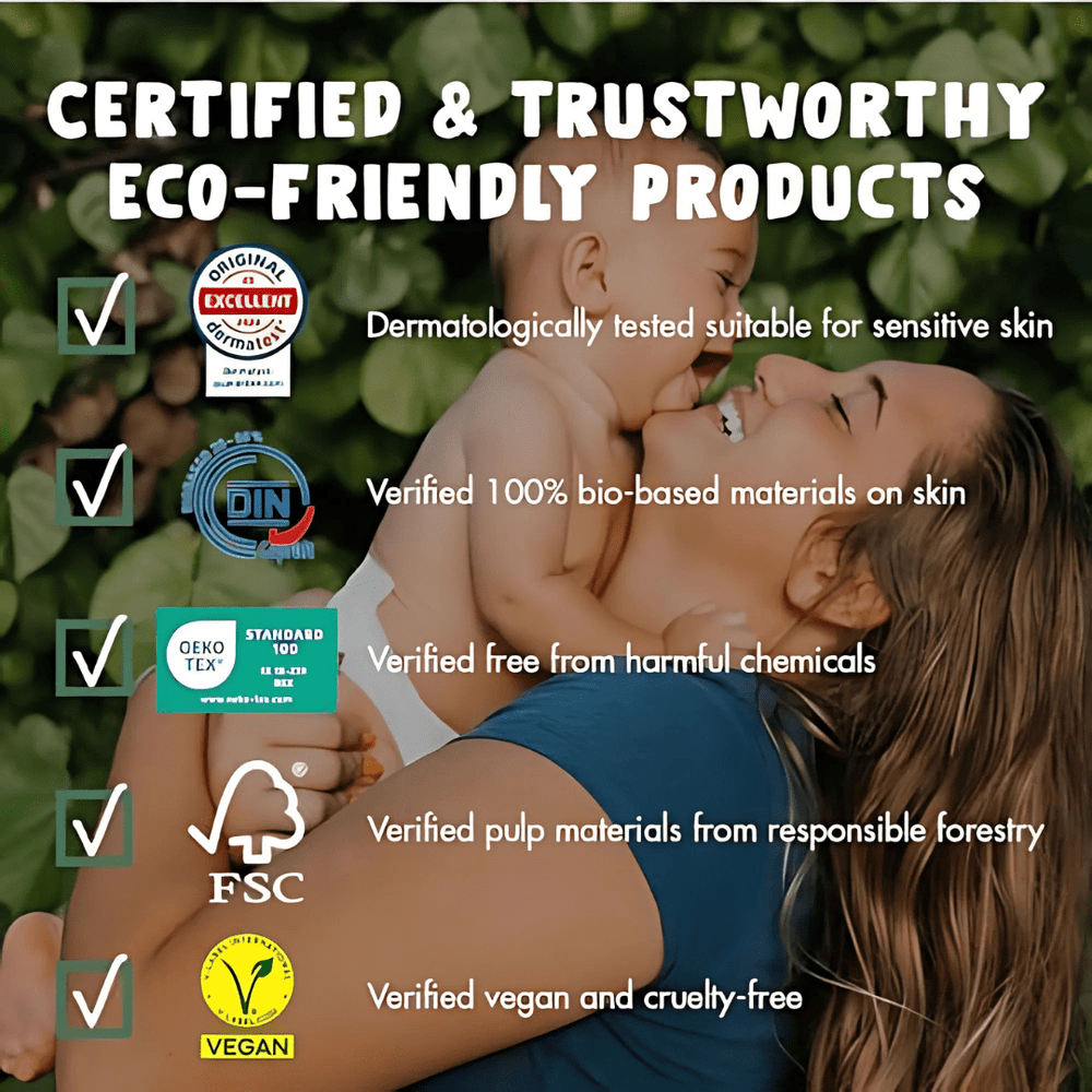 - RESPONSIBLE & MADE WITH PLANT-BASED MATERIALS: Our infant diapers are parent’s choice because they are made without chlorine, latex, alcohol, perfumes, PVC, lotions, TBT, parabens, sulphates, & phthalates. They are unprinted, unscented, hypoallergenic, and cruelty-free to protect the next generation.