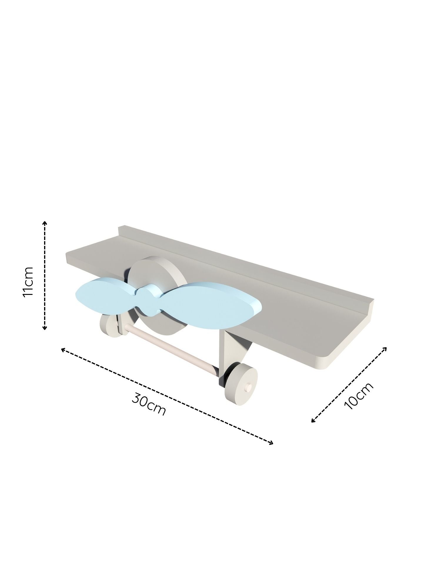 This charming wall-hung shelf features a playful plane shape, finished in soothing pastel shades. Ideal for kids' bedroom décor, it provides both a whimsical touch and practical storage for toys, books, or small treasures.
