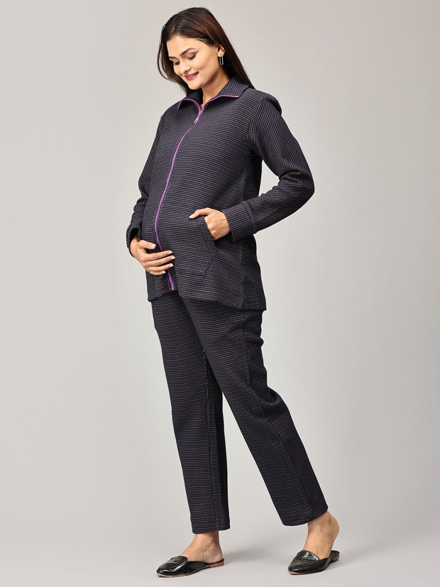 - Blue-Purple Maternity and Nursing Bomber Jacket Co-Ord Set