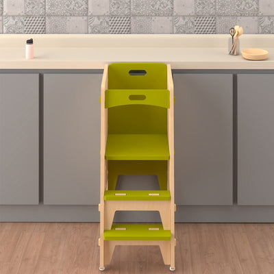 Yellow lychee kitchen tower is a great way to get your little one involved in cooking, cleaning, and other practical life activities at home. Essentially a kitchen helper tower is a child-safe stool that allows children as young as 12 months to reach the kitchen counters and other hard-to-reach areas. Because kitchen helper towers promote accessibility, independence and freedom of movement. They are a popular choice among Montessori families. This learning tower can be adjusted to three levels 12 inches, 15 inches &18 inches depending on their age and height.