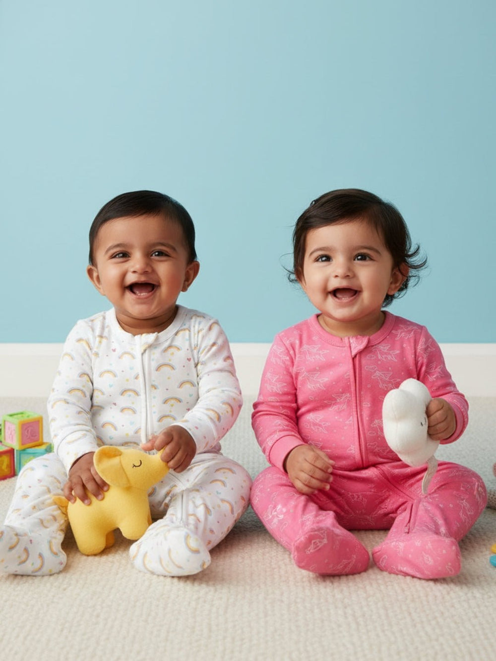 - Combo of 2 Printed Baby 2 Way Zipper Romper