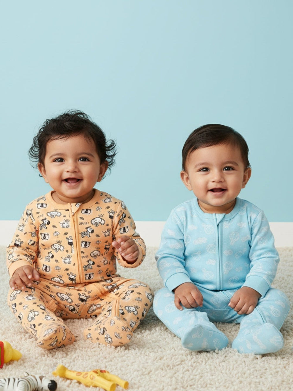 - Combo of 2 Printed Baby 2 Way Zipper Romper