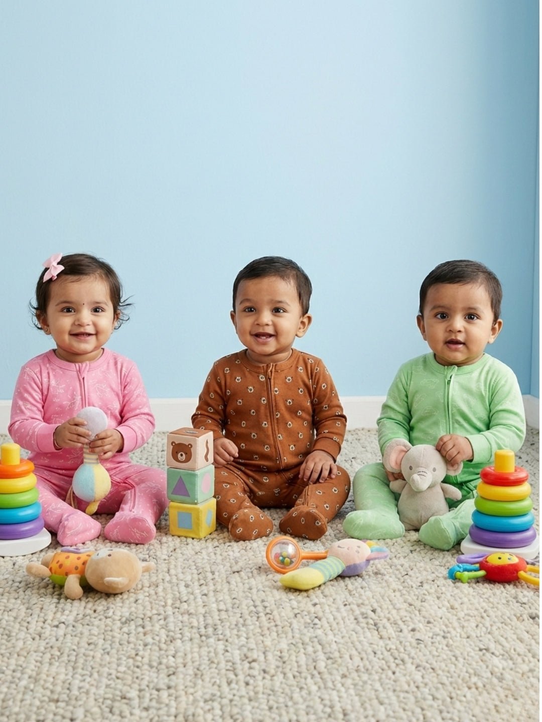 - Combo of 3 Printed Baby 2 Way Zipper Romper